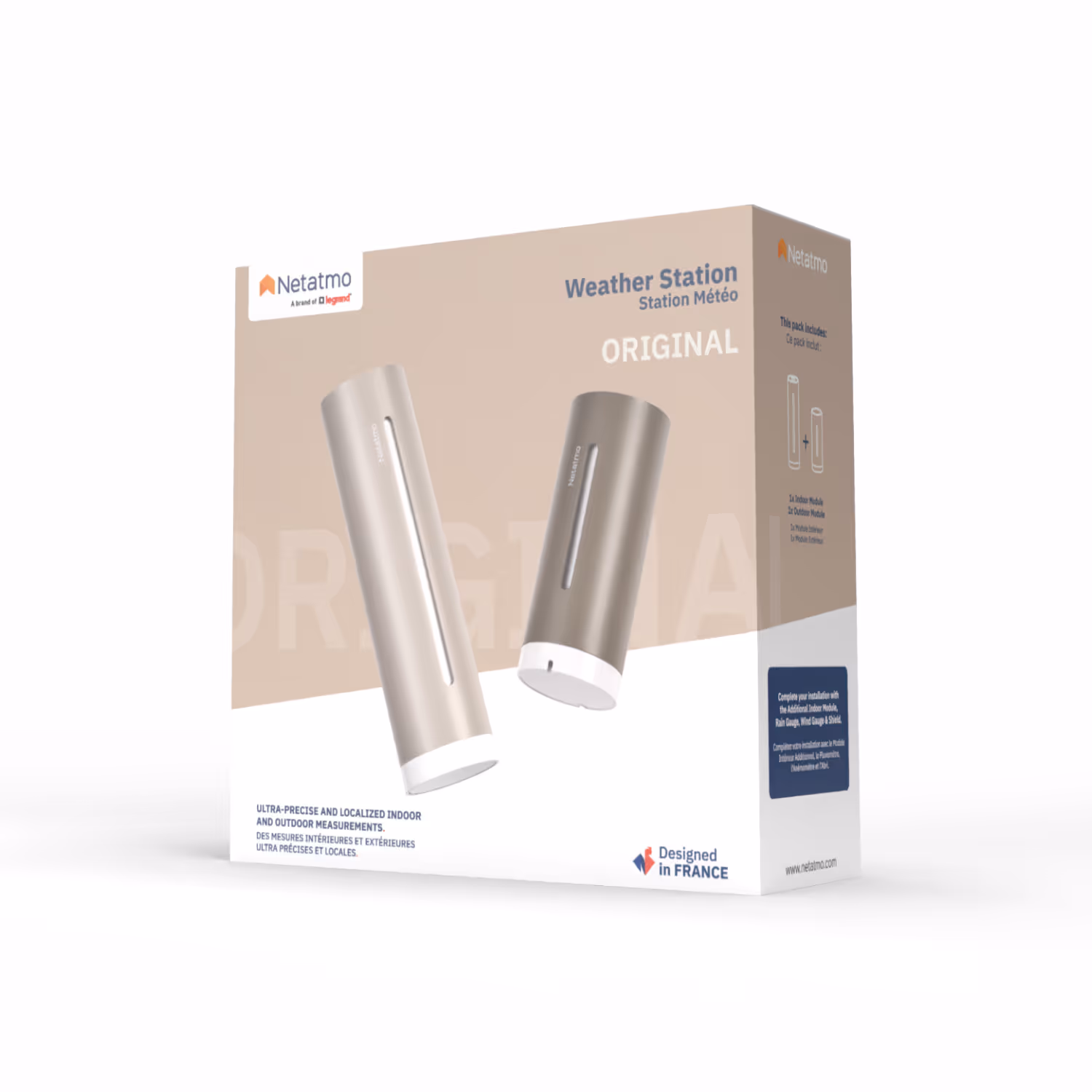 The Outdoor Module (small) wirelessly sends its measurements to the Indoor Module (large) via a radio signal. Thanks to your Wi-Fi access point, the Indoor Module then transmits its own measurements as well as those of the Outdoor Module to your personal Netatmo online account. When you launch the Netatmo app, these measurements are retrieved from your personal Netatmo account and displayed in the app.