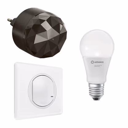 Céliane avec Netatmo est compatible avec les principales marques d’éclairage connecté mentionnant "Zigbee 3.0". Contrôlez ampoules, spots, bandeaux LED et bien plus encore via l’application Home + Control ou les Commandes sans Fil.