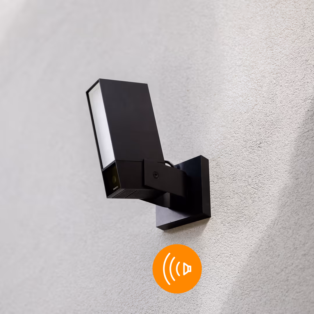 Votre Caméra Extérieure Intelligente est équipée d'un système d’éclairage intégré qui vous assiste dans toutes les situations. Si elle détecte une présence, l’éclairage s’allume et peut soit repousser un intrus, soit éclairer votre chemin.